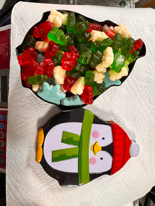 1 or 2lb Christmas Candy Tins Santa or Penguin